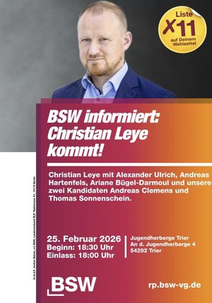 Es besucht uns unser Generalsekretär Oliver Ruhnert. Zusammen mit Spitzenkandidatin Ariane Bügel-Darmoul und unserem Landesvorsitzenden Alexander Ulrich geht es um Landes-, Bundes- und Kommunalpolitik, welche Pläne unser BSW für Rheinland-Pfalz hat und warum wir in den Landtag wollen.