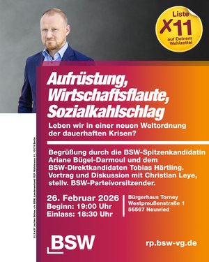 Der rheinland-pfälzische BSW-Landesverband ist mit Fragen zur anstehenden Landtagswahl auf mich zugekommen. Im Folgenden erkläre ich die Ziele und Absichten, die ich mit meiner Kandidatur für das BSW Rheinland-Pfalz auf Platz 1 verbinde: